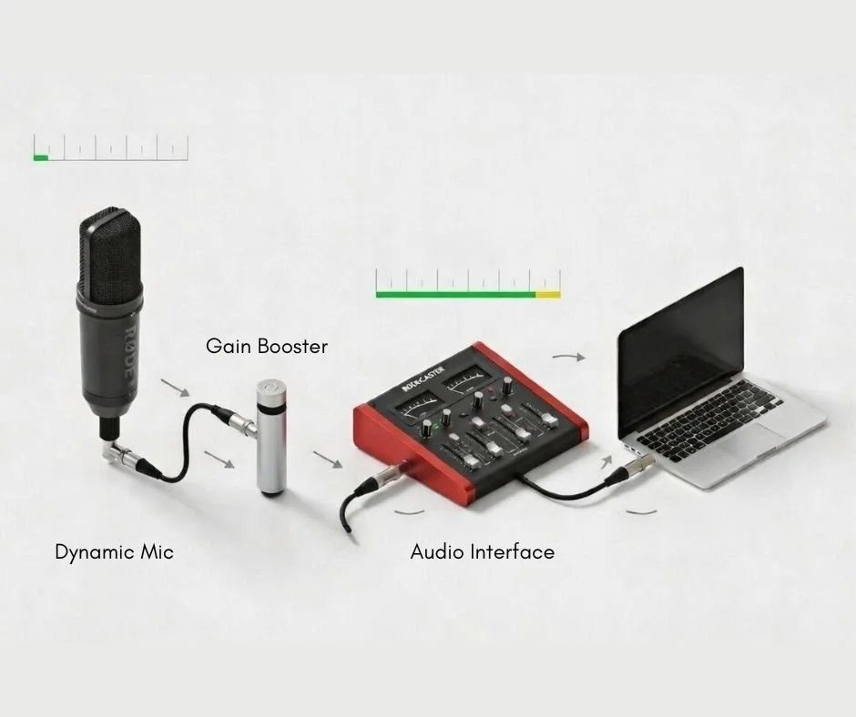 Don't let gear snobbery convince you that expensive is always better. Dynamic mics need extra gain. Gain boosters provide it. Buy what fits your budget, then focus on what actually matters — recording consistently, improving your content, and building an audience.